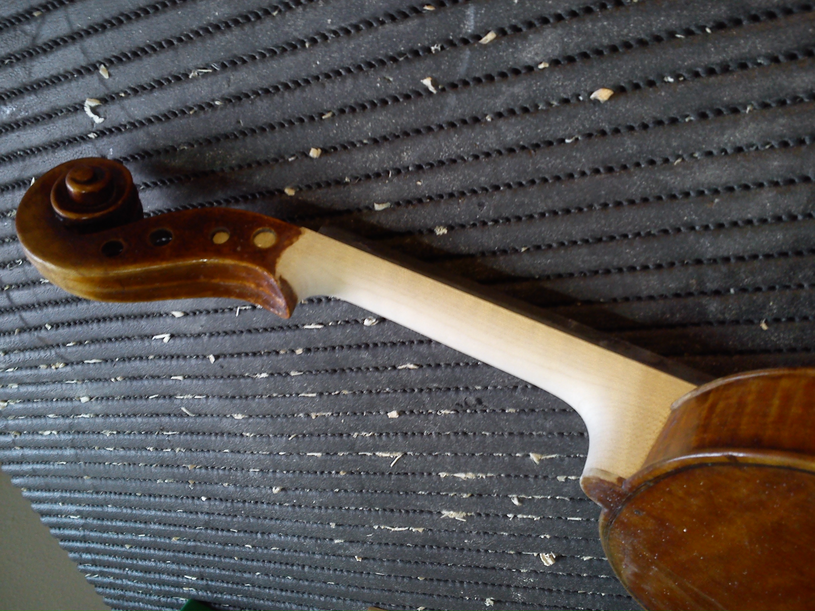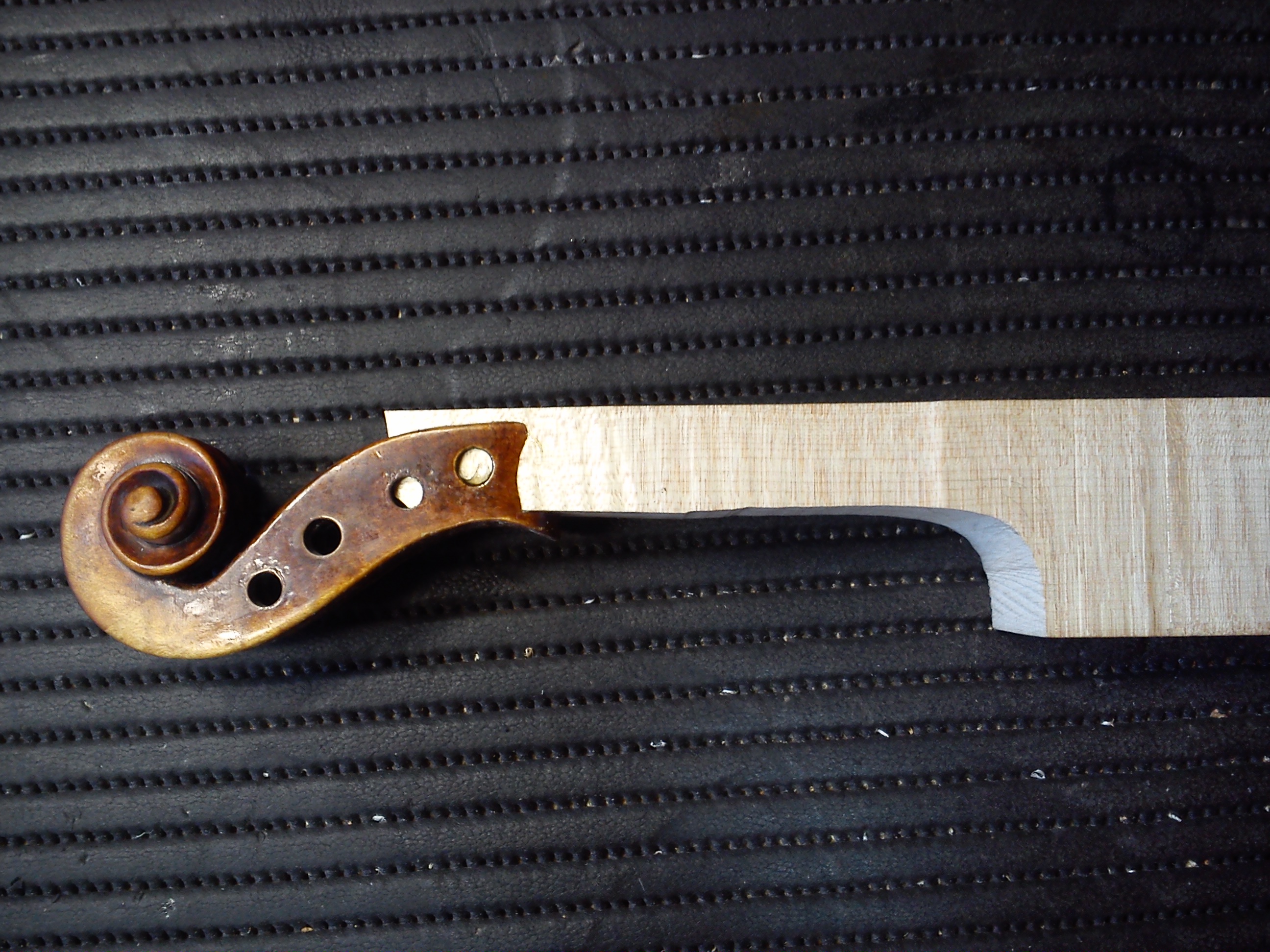 Reparación violín encastre de cabeza. Italiano S. XVIII :